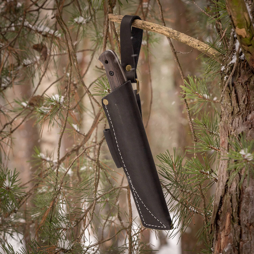 Pochwa skórzana BPS Knives na nóż SH07 Czarna uniwersalna z krzesiwem to wygodne i pewne przenoszenie noża z głownią stałą.