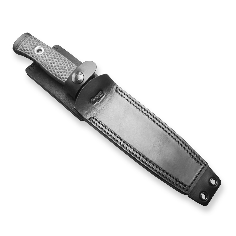 Pochwa posiada dużą przelotkę na przypięcie do paska, jej mocowanie następuje dwoma zatrzaskami, otwieranymi jednostronnie w sposób kontrolowany, co praktycznie uniemożliwia zgubienie. Nóż przed wypadnięciem zabezpiecza szlufka z masywnym zatrzaskiem umiejscowiona na wysokości rękojeści. Wszystkie zatrzaski oryginalnej produkcji Pull-the-DOT®.