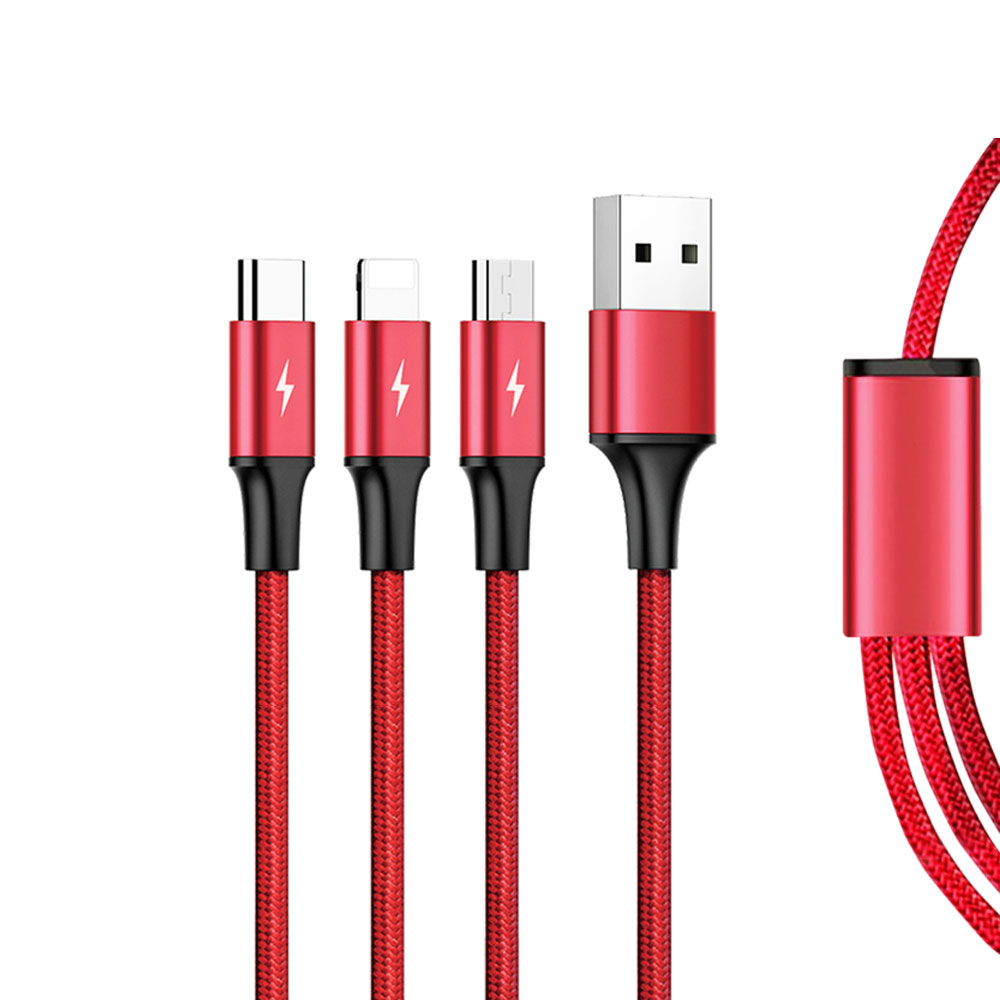 Przewód Ładujący Unitek USB 3 w 1 Czerwony to rozwiązanie idealne dla osób lubiących porządek i posiadających urządzenia z różnymi portami ładowania. To wysokiej jakości, niezawodny kabel do jednoczesnego ładowania Twojej latarki, smatfona czy tableta.