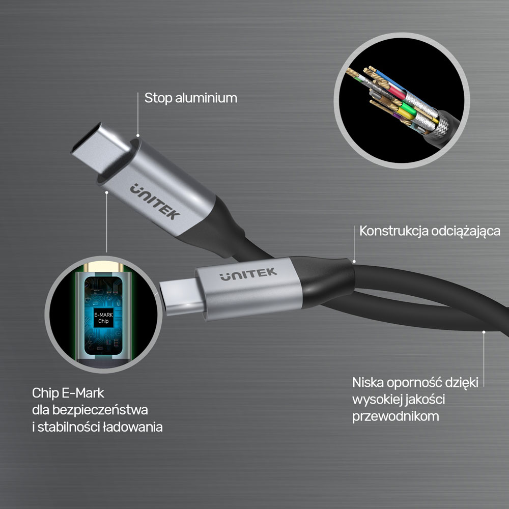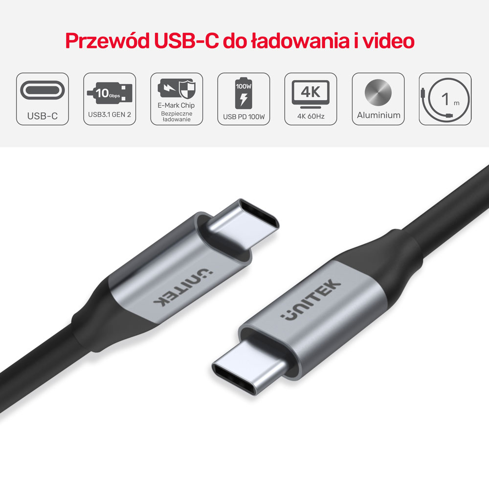 Przewód Unitek USB-C na USB-C 4K 60Hz 20V/5A 1 m