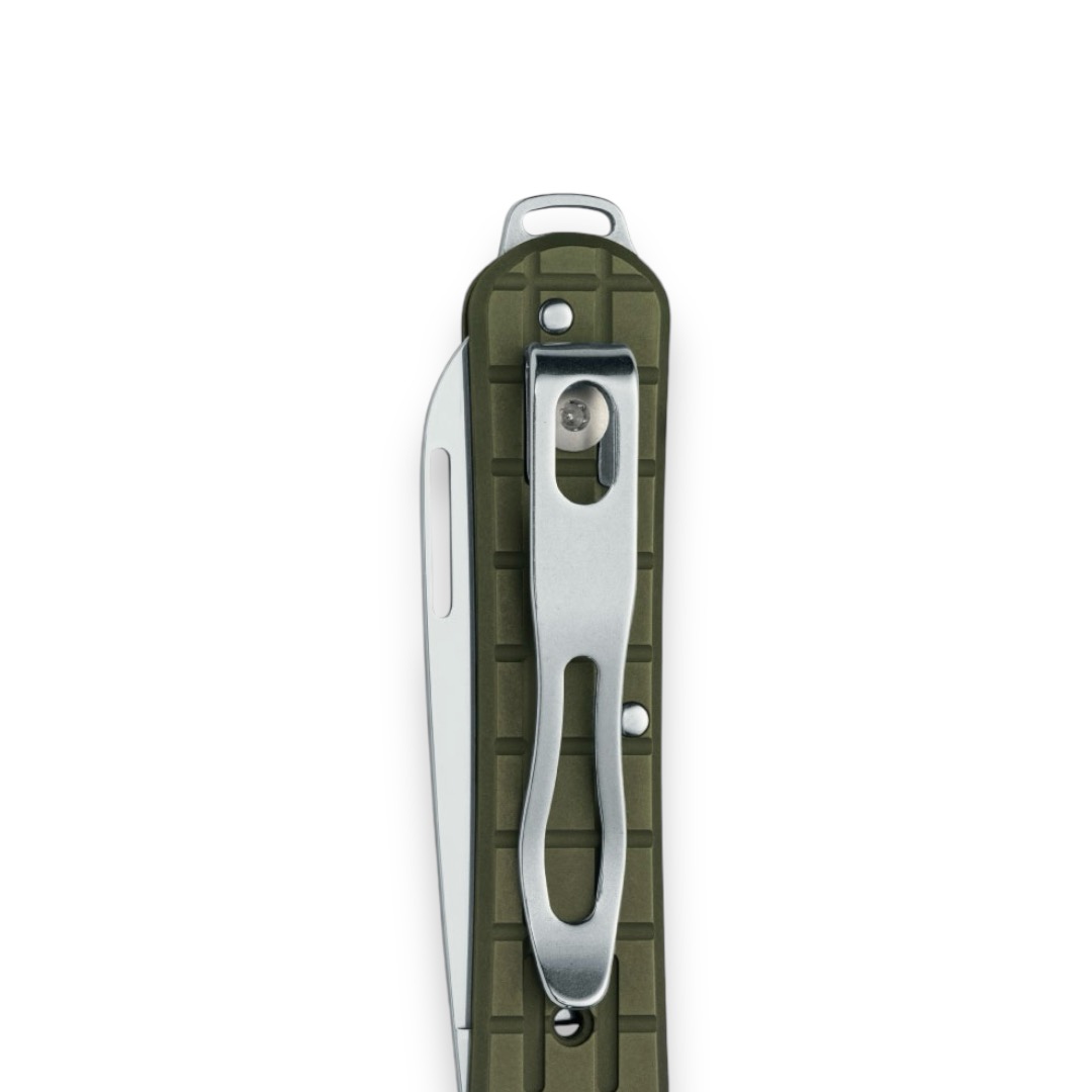 Nowością w prezentowanej wersji w stosunku do wcześniejszych wersji scyzoryka jest dołączenie klipsa ze stali nierdzewnej umożliwiającego zahaczenie Vulpis’a o krawędź kieszeni spodni, solidniejsze zamontowanie w saszetce czy organizerze. Klips zamontowano w pozycji Tip-Up, układającej wierzchołek ostrza do góry w przypadku zapięcia scyzoryka klipsem o krawędź kieszeni.