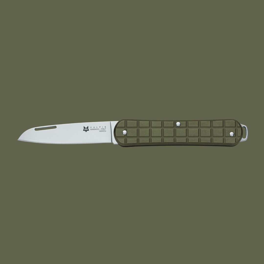 Scyzoryk Fox Knives Vulpis FX-VPGP130 MG Polished N690 M-Green Anodized Aluminium Milled Pattern
