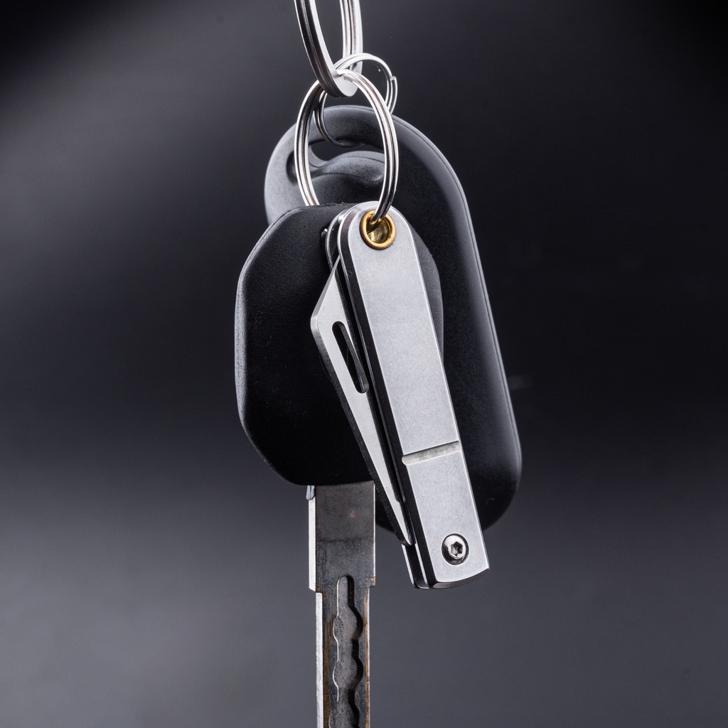 Konstrukcję zakończono odcinkiem stali nierdzewnej z otworem na smycz czy paracord, czy też kółko do kluczy.