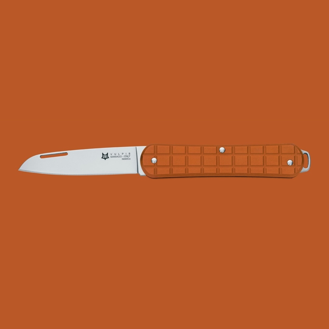Scyzoryk Fox Knives Vulpis FX-VPGP130 OR Polished N690 Orange Anodized Aluminium Milled Pattern