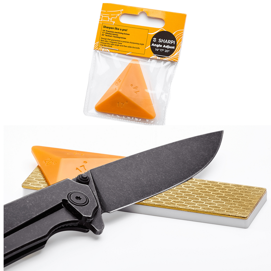 **ZASTOSOWANIE**: Wspomagająca proces prowadnica pomagająca utrzymać kąt krawędzi tnącej podczas ostrzenia na kamieniach ostrzących, ostrzałkach ręcznych itp.