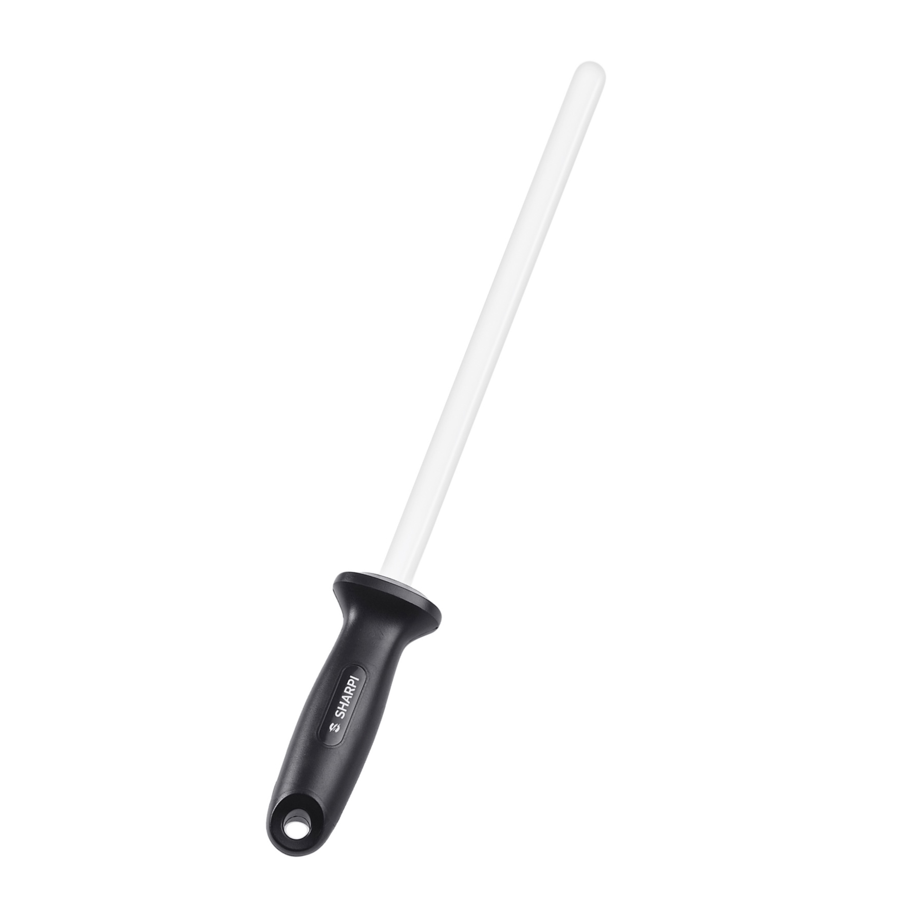 SHARPI Stalka Ceramiczna Musak Ostrzałka Prętowa Ceramiczna 25 cm #1000 do regularnego wygładzania krawędzi tnącej (honowania) noży stalowych. Gradacja #1000 pozwala na bardzo precyzyjne, delikatne ostrzenie – idealne do utrzymania ostrości noży kuchennych, zwłaszcza wykonanych z twardszych gatunków stali.