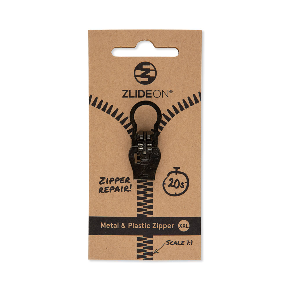 Suwak Naprawczy ZlideON XXL Normal Plastic & Metal Black 10A-1 został przeznaczony do naprawy normalnych zamków błyskawicznych wykonanych z plastiku i metalu w rozmiarze XXL (oznaczenie starego, uszkodzonego suwaka 10). Pasuje do ciemnych/czarnych zamków wykonanych z tworzywa sztucznego i metalu o wymiarach: