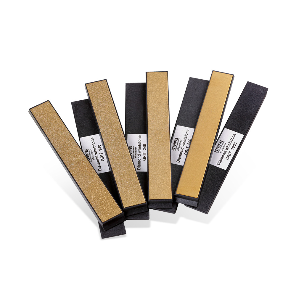 System dostarczany jest z trzema gradacjami kamieni diamentowych, 240, 600 oraz 1000. Jeśli nóż posiada uszkodzoną krawędź tnącą lub jest bardzo mocno stępiony, zaczynamy od 240 i zmieniamy gradacje stopniowo na 600 a później na 1000 do uzyskania pożądanego efektu. W innych wypadkach wystarczy używać wyższych gradacji.