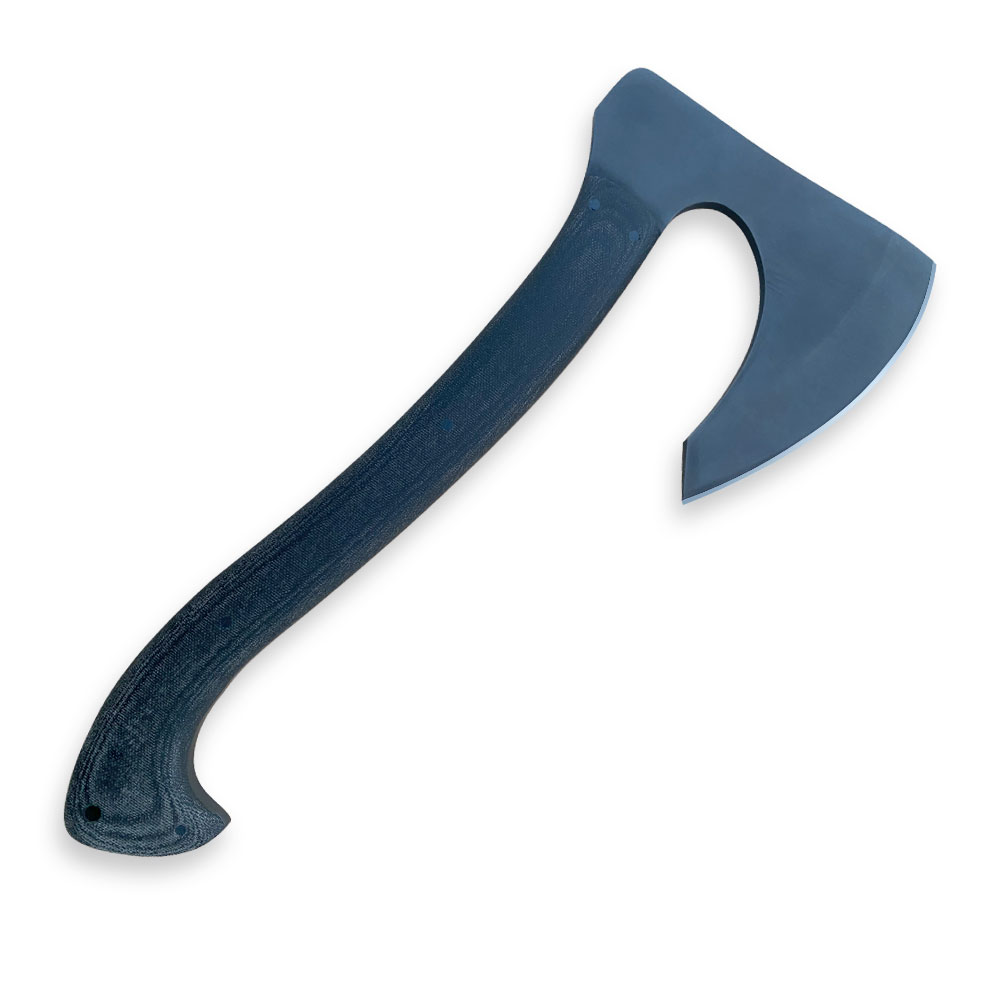 Okładziny rękojeści wykonane zostały z micarty (canvas micarta), materiału odpornego na wilgoć, zmiany temperatury, większość rozpuszczalników i kwasów, posiadającego wysoką odporność na uszkodzenia mechaniczne. Micarta znana ze swoich doskonałych właściwości, również wizualnych (daje się stylizować na naturalny materiał) ma antypoślizgową, chropowatą strukturę. Rękojeść posiada chropowatą fakturę poprawiającą pewność uchwytu. Wyprofilowanie rękojeści z z charakterystycznym zakrzywieniem na końcu utrudnia wyślizgnięcie się topora z rękojeści podczas pracy. Na zakończeniu rękojeści umieszczono otwór na linkę, rzemień, paracord itd.