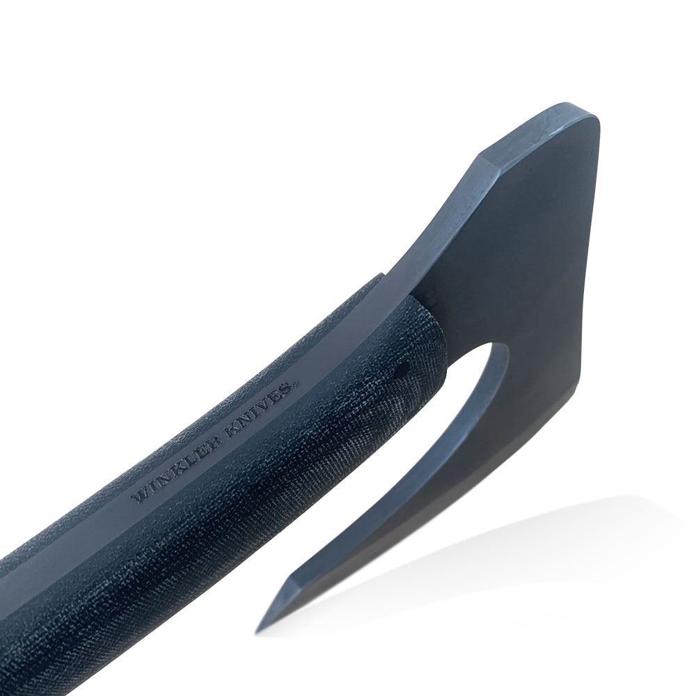 Idealny towarzysz na przygody w terenie oraz niezawodne wsparcie, które możesz zawsze mieć przy sobie w swojej podręcznej torbie ze sprzętem. Kompaktowy, lekki i wszechstronny. Przytrzymaj u podstawy rękojeści do siekania, chwyć bezpośrednio za ostrzem, aby wykonać drobniejsze zadania. Stal Winkler 80CrV2 oraz konstrukcja full tang czyni z niego niezwykle wytrzymałe i niezawodne narzędzie, które można łatwo ostrzyć w terenie. Prezentowane wykonanie posiada okładziny rękojeści z czarnej micarty oraz kydexową kaburę z funkcją szybkiego dostępu. Wykonanie przez Daniela Winklera i jego zespół z Winkler Knives w górach Północnej Karoliny.