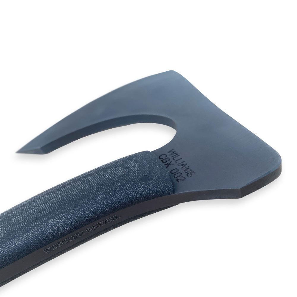 Topór Williams Blade Design CBX002 Compact Bearded Axe 12.5” to projekt Jamesa Williamsa, wykonany przez Winkler Knives w limitowanej liczbie 100 egzemplarzy. Williams Blade Design: Ojciec i Syn. Ojciec – znany amerykański trener dalekowschodnich sztuk walki, wcześniej projektujący noże dla firmy nożowej CRKT (Columbia River Knife and Tool), Syn – dumnie kontynuujący i wnoszący powiew świeżości do projektowej pracy Ojca. Efektem są autorskie projekty, które finalnie wykonywane są przez znanych i cenionych w branży nożowej producentów.
