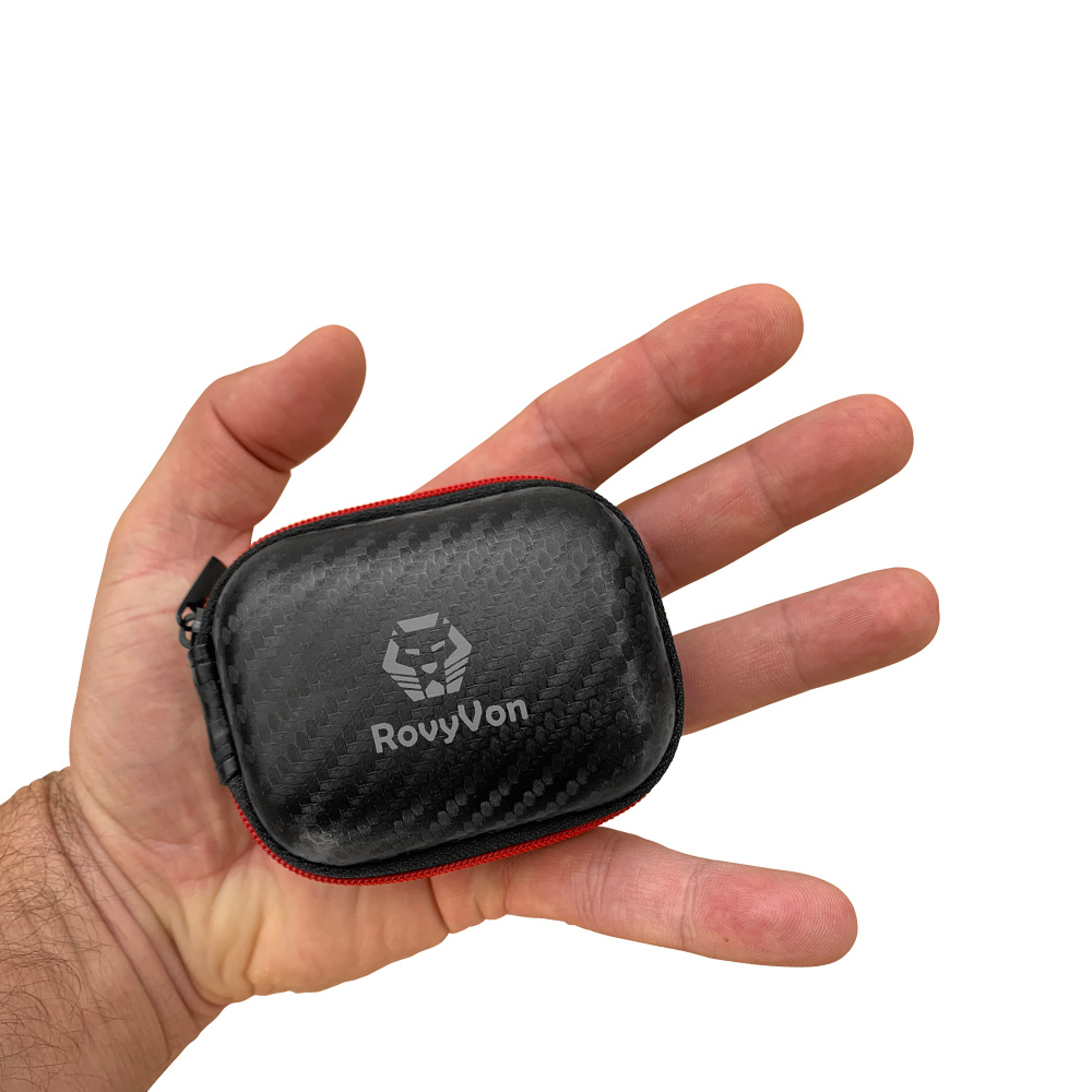 W zestawie z kapsułą otrzymujemy etui RovyVon o wymiarach zewnętrznych 110 x 110 x 55 mm. Etui może służyć jako dodatkowy organizer, z którym z powodzeniem pomieścimy kapsułę U7, nóż składany lub scyzoryk, średniej wielkości latarkę i inne średniej wielkości elementu. Etui posiada usztywnioną konstrukcję i jest zamykane na obustronny zamek błyskawiczny.