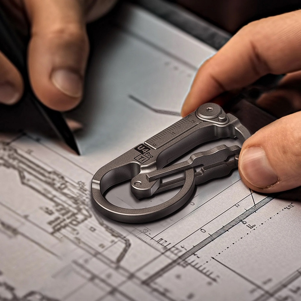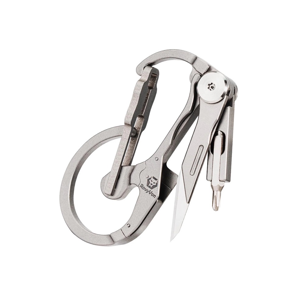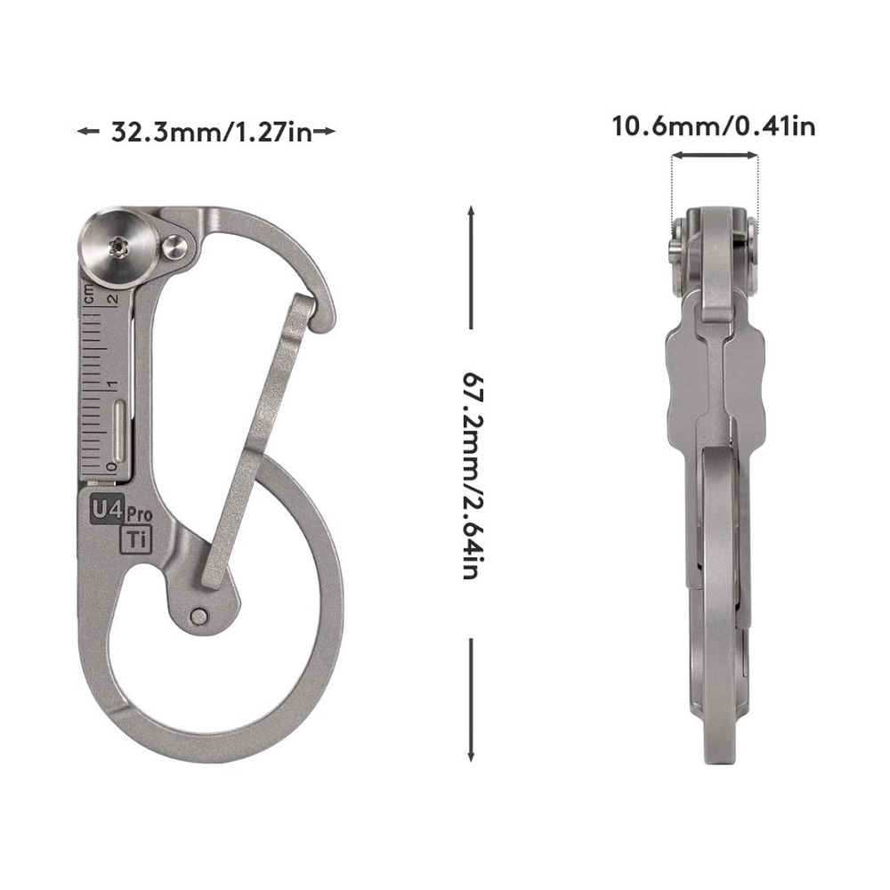 Tytanowy Karabińczyk RovyVon U4 Pro ze Skalpelem, Miarką, Wkrętakami Torx T6+T8 z lekkiego i wytrzymałego tytanu.