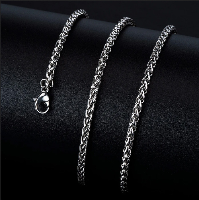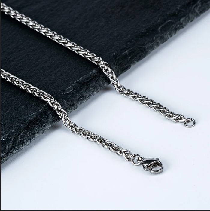 Łańcuszek ze stali nierdzewnej o długości 60 cm. Łańcuszek posiada zapinkę, dzięki którem można go założyć na szyi lub owinąć ciaśniej wokół nadgarstka.