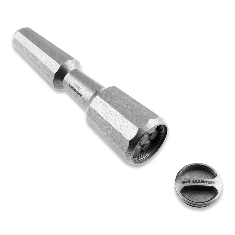 Tytanowy Wkrętak EDC Bit Master to projekt Andriusa Triciusa z TRC Knives, zrealizowany we współpracy z fińską marką Audacious Concept. Poręczne narzędzie codzienne z 7 popularnymi bitami niemieckiej marki Wera mieszczącymi się w magazynku Bit Mastera. Całość dostarczana z nylonowym pouchem o dwóch kieszeniach. Jedna z nich może być wykorzystana na dodatkowe narzędzie lub element wyposażenia EDC taki jak np. nóż składany, latarkę itd. w zależności od potrzeb użytkownika. Bit Master zaprojektowany jest właśnie do obsługi tych elementów a dodatkowo do sprzętu elektronicznego i innych sprzętów.