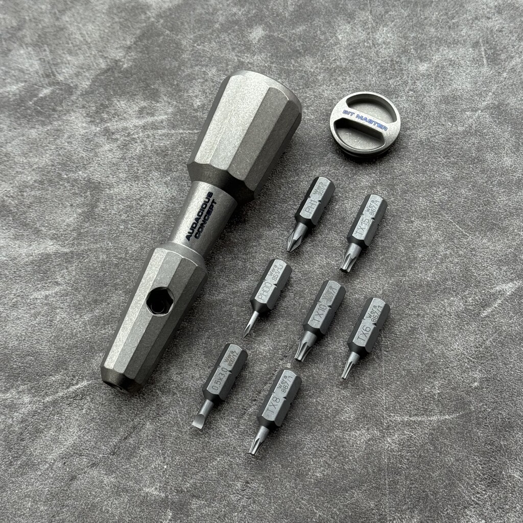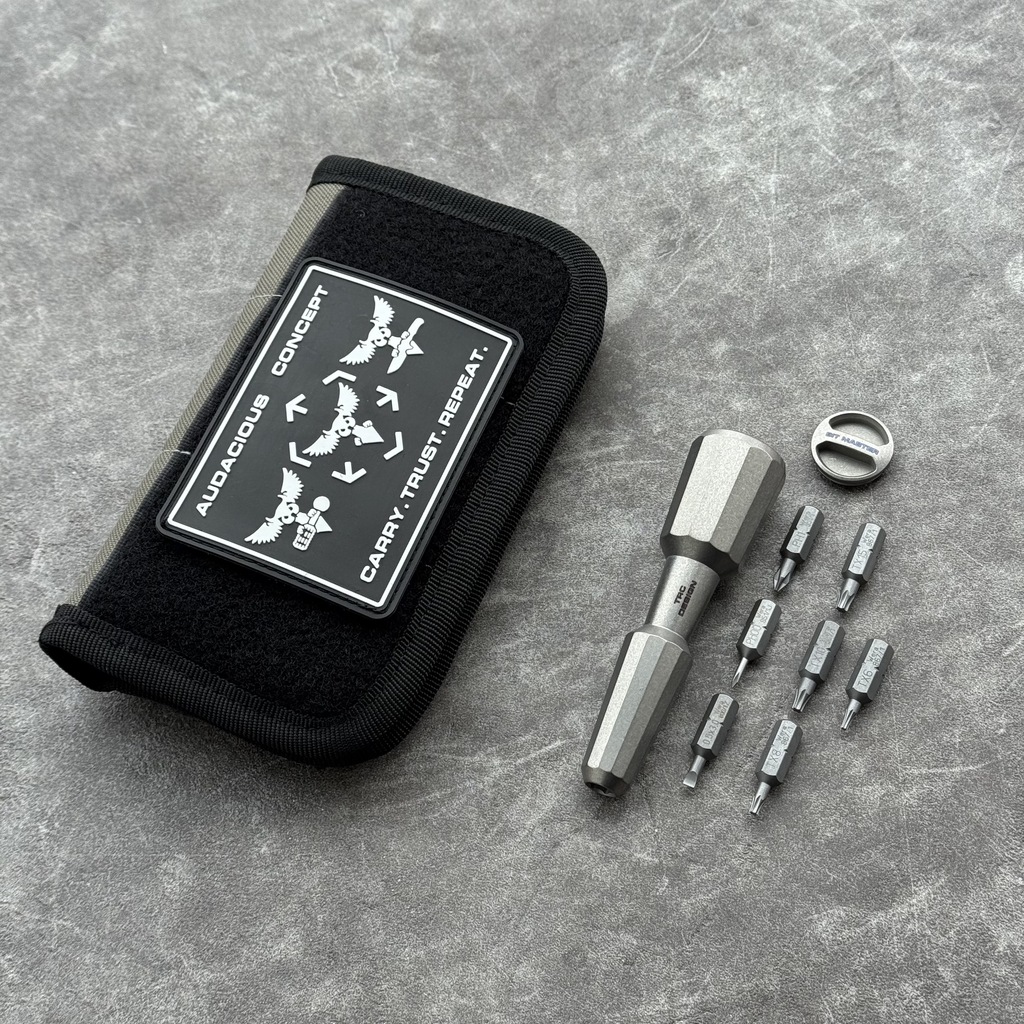 Tytanowy Wkrętak EDC TRC Design by Audacious Concept Bit Master Titanium Stonewashed | Pouch z 7 Bitami Wera