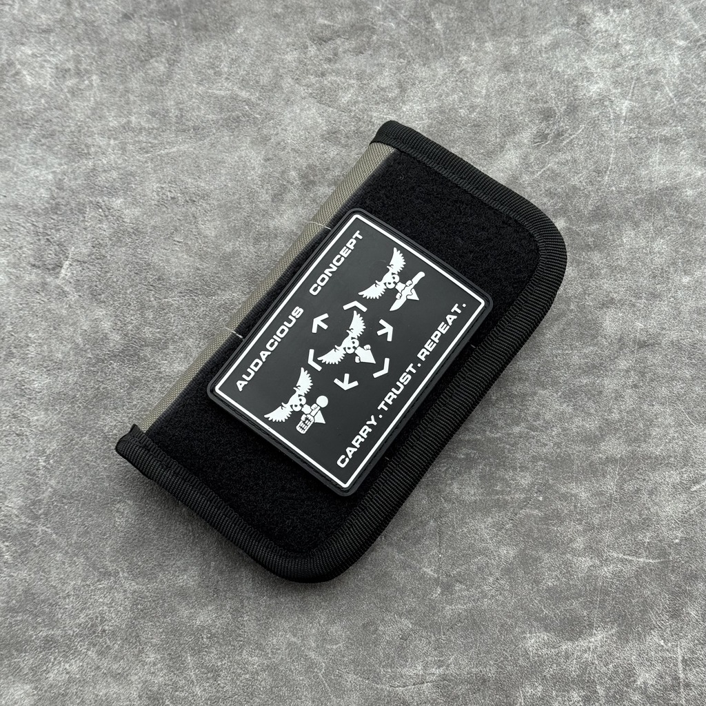 W zestawie znajduje się lekki nylonowy pouch zamykany na rzep, wyposażony w panel velcro z dołączoną naszywką Audacious Concept. Wewnątrz znajdują się dwie kieszenie — jedna przeznaczona na Bit Mastera, druga pozostawiona użytkownikowi na dowolny element EDC (np. latarkę, scyzoryk, tool, zapas bitów).