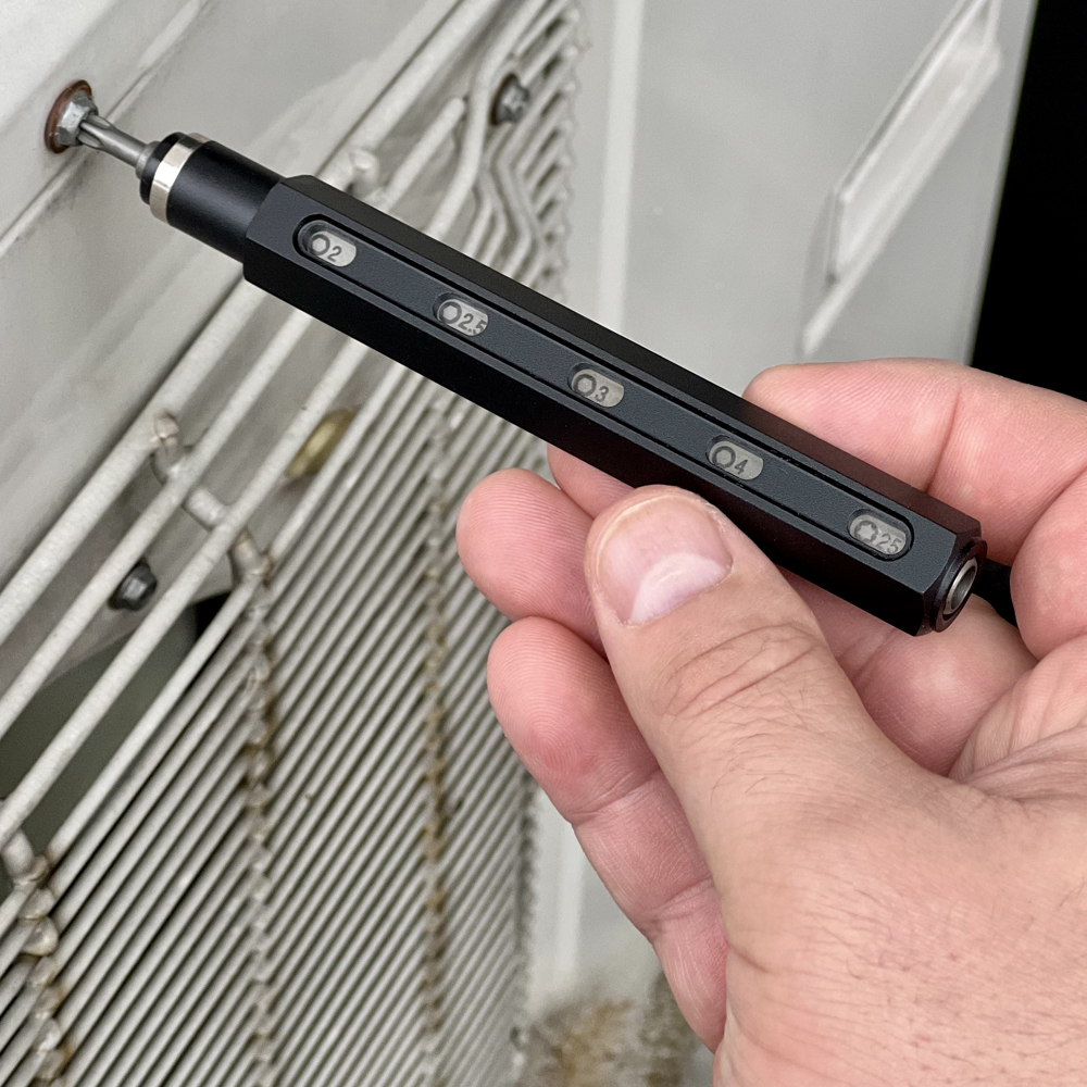 Wystarczy zdjąć magnetycznie mocowaną skuwkę i skorzystać z potrzebnej w danym momencie końcówki wkręcającej. W razie potrzeby użycia innego z bitów, należy wymienić końcówkę. Odbywa się to poprzez wyjęcie aktualnie dostępnego bita i włożenie go z tyłu długopisu. Czynność należy powtarzać, aż do pojawienia się od strony „piszącej” pożądanej końcówki wkręcającej. Dla łatwości w lokalizacji właściwej końcówki, z boku długopisu znajdują się okienka podglądu z częścią końcówki wkręcającej zawierającą jej nazwę.