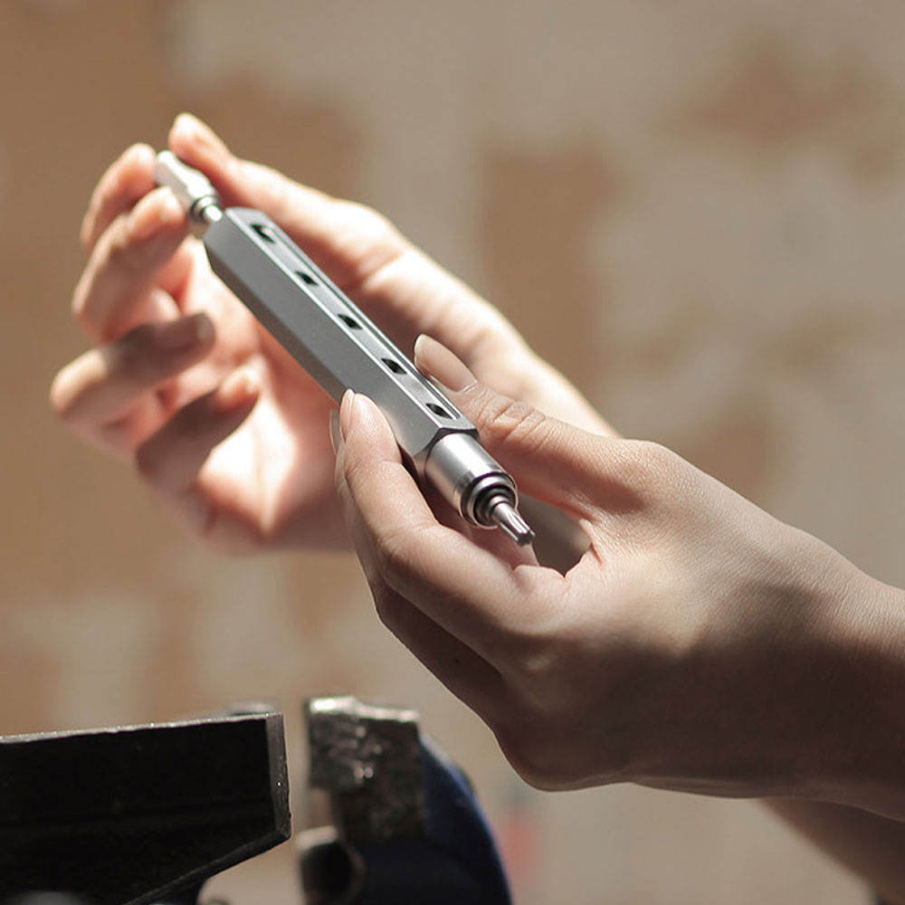 Korpus Tool Pen’a wykonany został z lekkiego aluminium 6061. Jest to wytrzymały materiał o bardzo dobrej odporności na zjawisko korozji. Korpus posiada sześciokątny kształt do którego wchodzą sześciokątne końcówki wkręcające.
