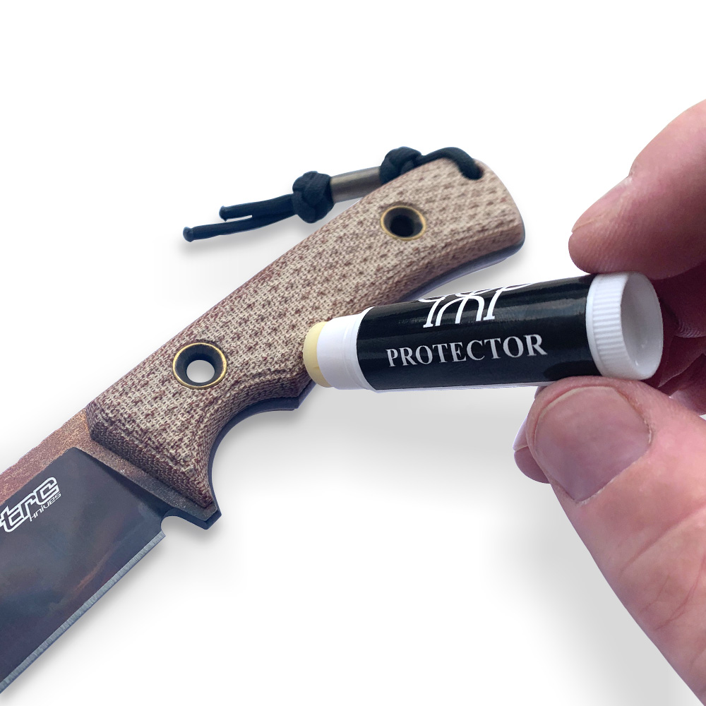 Wosk podany w bardzo wygodnej i przystępnej formie sztyftu. Zawiera 5 ml substancji, którą można wykorzystać do doraźnego zabezpieczenia pracującego w terenie noża, maczety, scyzoryka, siekiery itd.