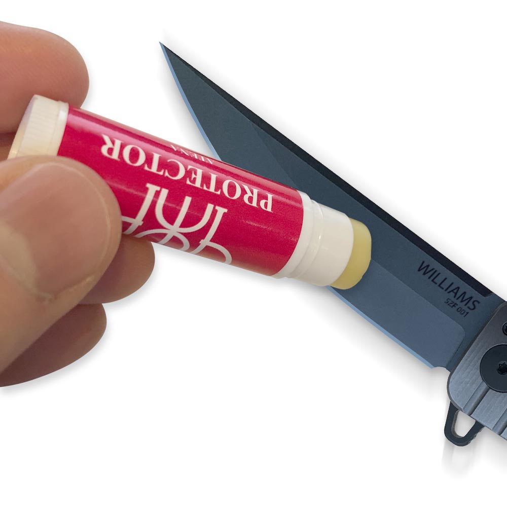 Wosk podany w bardzo wygodnej i przystępnej formie sztyftu. Zawiera 5 ml substancji, którą można wykorzystać do doraźnego zabezpieczenia pracującego w terenie noża, maczety, scyzoryka, siekiery itd.