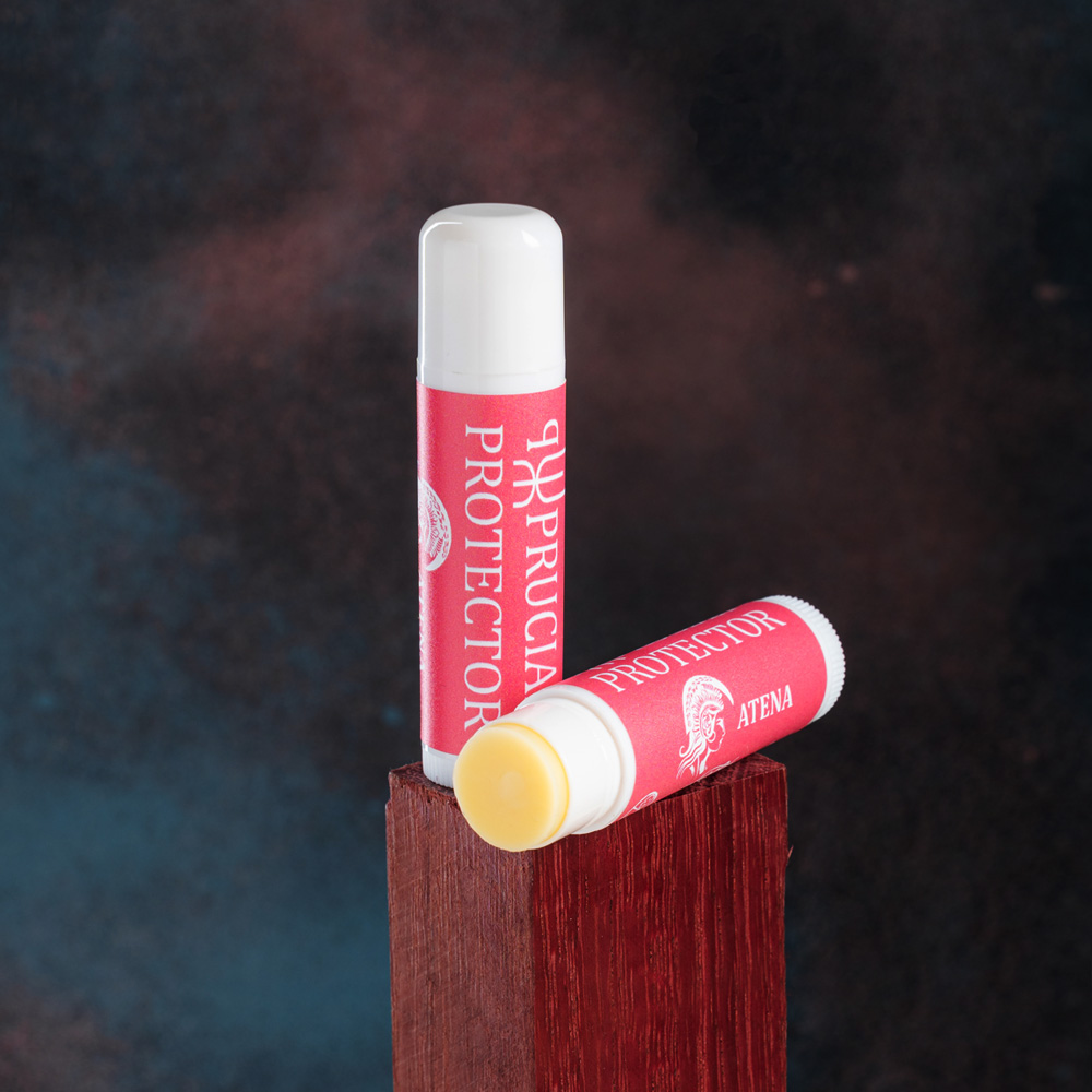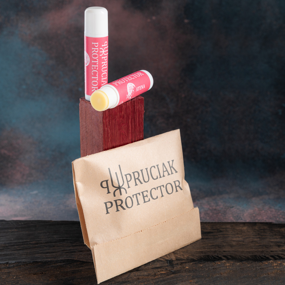 Wosk do noży Pruciak Protector Atena w sztyfcie uniwersalny z dodatkiem zapachowym opracowany przez Pawła Pruciaka. Autorska receptura do pielęgnacji i zabezpieczenia noża podana w formie wygodnego, kieszonkowego aplikatora o wielkości szminki do ust. Uniwersalny w zastosowaniu, do kompleksowej ochrony wszystkich elementów składowych noża: stalowego ostrza, rękojeści (z drewna, z micarty itd.), pokrowca na nóż (skórzana pochwa). Nadaje połysku, chroni przed wodą. Zrobiony z całkowicie naturalnych składników jest bezpieczny w kontakcie z żywnością. Minimalistyczny, nie zajmujący dużo miejsca. Świetne rozwiązanie pomagające zadbać o swój ekwipunek w trakcie wypadu do lasu, wyjazdu, wycieczki, kempingu itd.