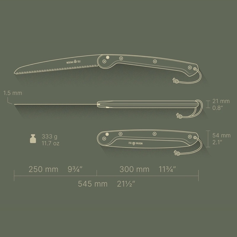Każda piła oznaczona jest indywidualnym numerem, co podkreśla jej unikalny charakter oraz pochodzenie. WOXNA stawia na długowieczność produktów, które z czasem nabierają indywidualnego wyglądu i historii użytkowania.
