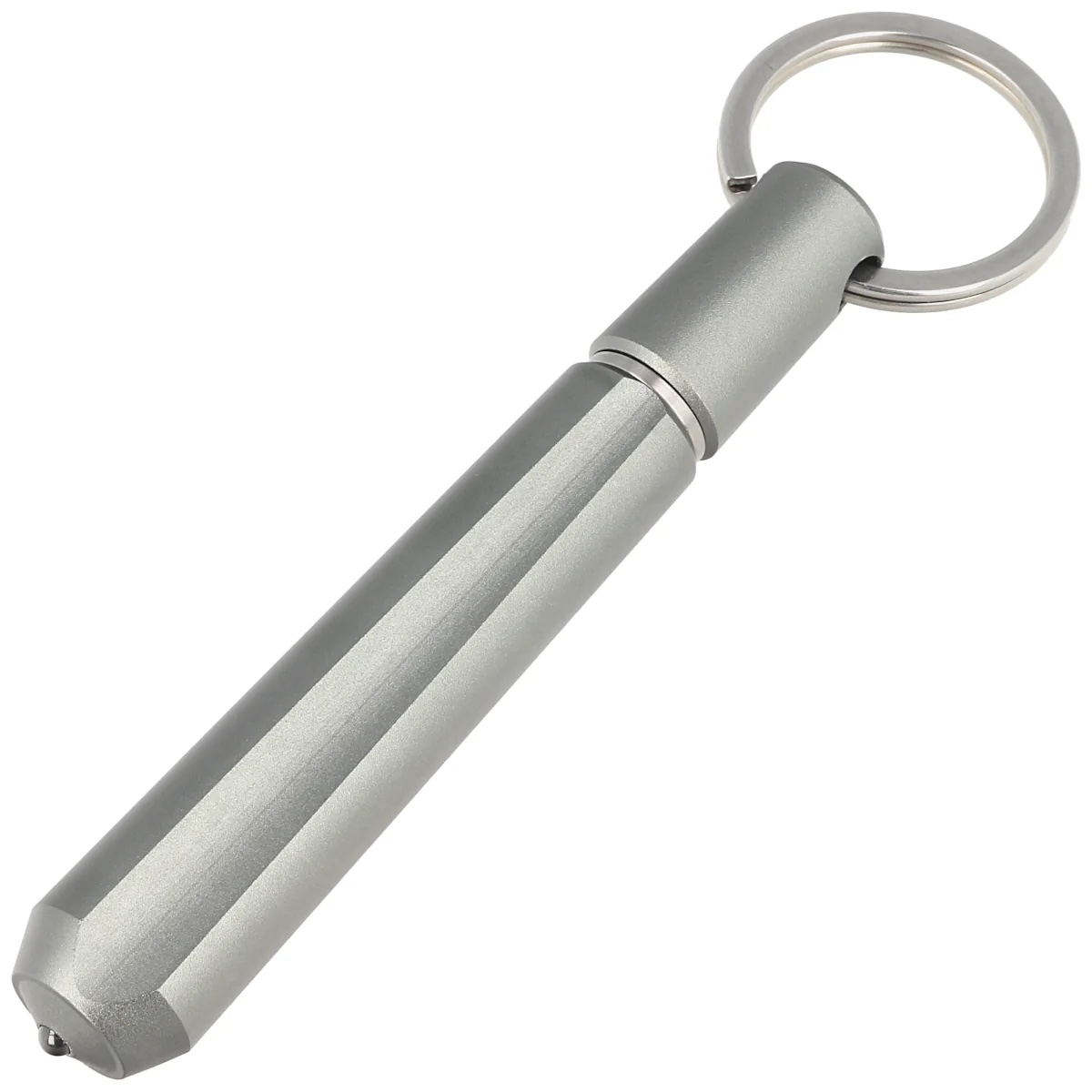 Real Steel Glass Breaker ma również końcówkę z kółkiem wykonaną ze stali nierdzewnej. Możesz ją wykorzystać do przypięcia narzędzia na przykład do kluczy, co sprawi, że zawsze będzie pod ręką. To idealne rozwiązanie dla tych, którzy cenią funkcjonalność i wygodę.
