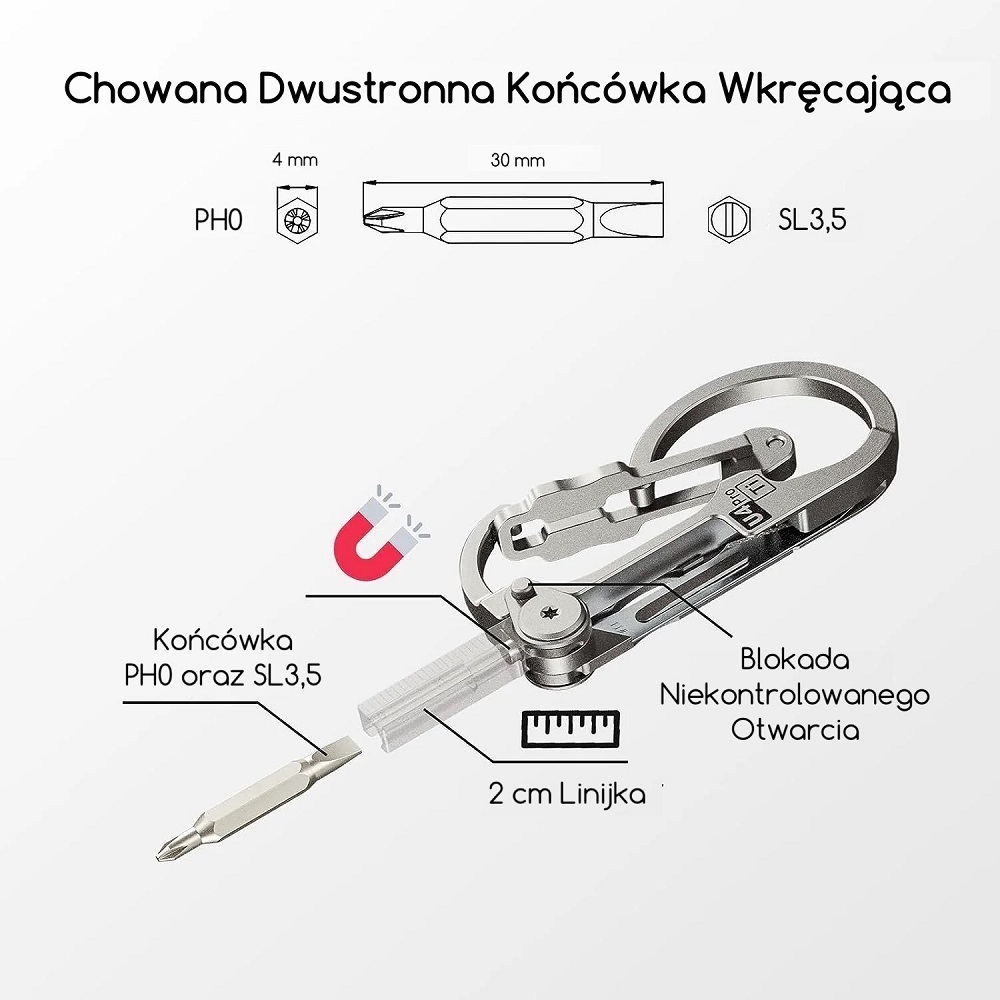 Tytanowy Karabińczyk RovyVon U4 Pro ze Skalpelem, Miarką, Wkrętakami Torx T6+T8 dostępnym TUTAJ.